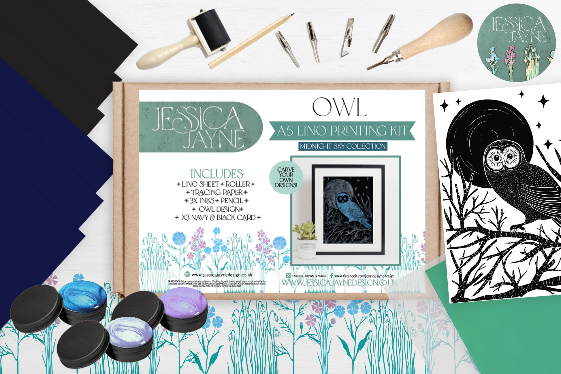 Midnight Skies- Lino Printing A5 Art Kit - Hare, Stag & Owl